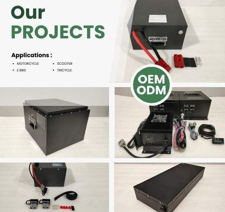 Batteries au lithium 24V–72V personnalisables (20Ah–200Ah) pour vélos électriques, scooters, tricycles et motos.